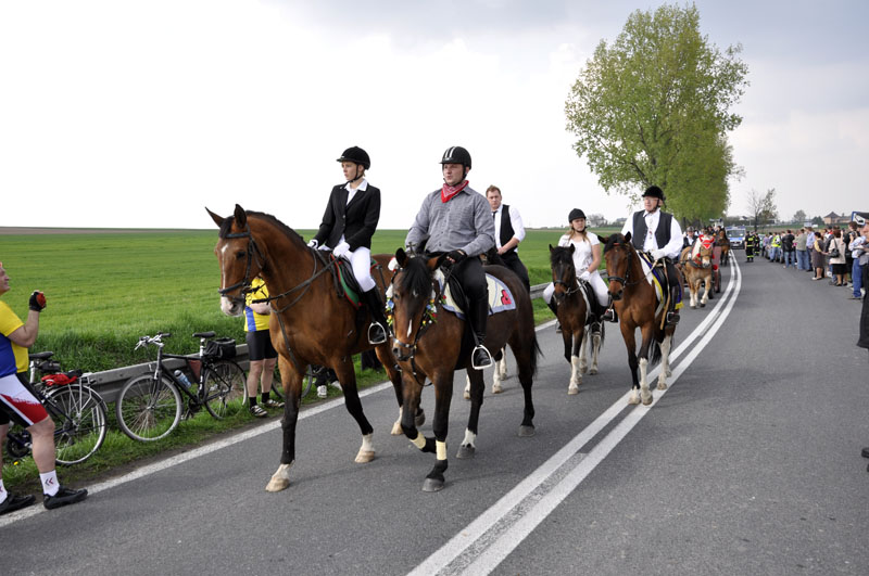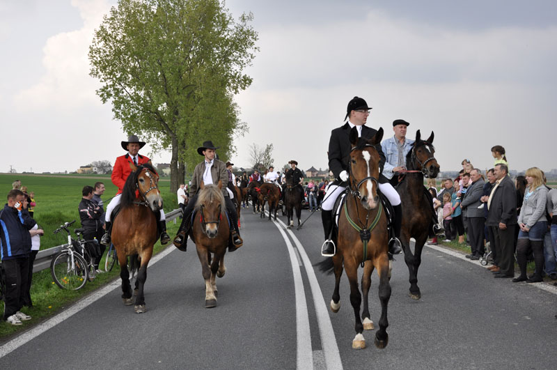 W tradycji morawskiej procesje wielkanocne odbywały się nie tylko konno, ale również pieszo. Z jednej strony to religijna pamiątka szukania Chrystusa (podobnie jak apostołowie odnaleźli Chrystusa w drodze do Emaus); z drugiej – to trochę magiczna forma zapewnienia polom urodzaju w nadchodzącym sezonie, co podkreśla nabożeństwo w kościele odpustowym Św. Krzyża, modlitwy w czasie drogi i sam objazd pól.