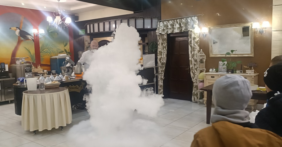 Organizator warsztatów zapewnia: wykład na temat zdrowych nawyków żywieniowych, omówienie bhp pracy i produkcji lodów przy wykorzystaniu ciekłego azotu, warsztat tworzenia własnych smaków lodów wraz z ich degustacją, doświadczenia z ciekłym azotem oraz najlepsze na finał ;) - poczęstunek dla uczestników (gofry i lemoniada własnej produkcji).