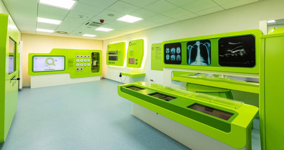 Bogactwo zastosowanych form wystawienniczych pozwala na różnorodne formy zwiedzania dostosowane do możliwości odbiorców od zabawowej przeznaczonej dla najmłodszych, poprzez interaktywne do tradycyjnych plansz i ekspozytoriów. W trakcie wędrówki po dawnych salach szpitalnych poznajemy różne oddziały szpitalne i specjalności medyczne (np. SOR, okulistyka, ortopedia, chirurgia, urologia, dermatologia). Na poszczególnych stanowiskach, często interaktywnych, przedstawiamy elementy anatomii człowieka (np. budowa oka – na okulistyce), narzędzia i technologie medyczne stosowane w określonej specjalizacji.