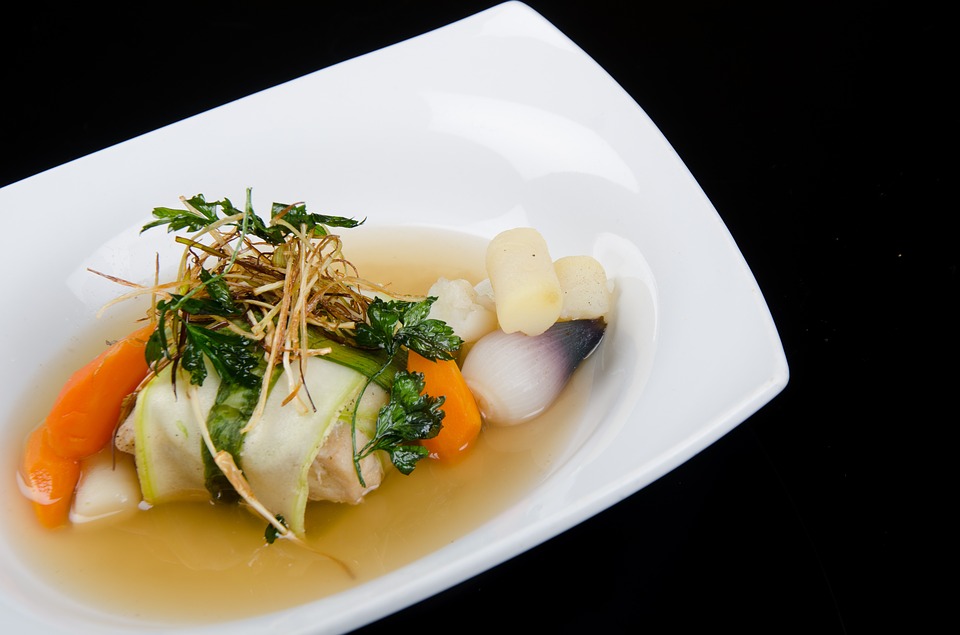 Umytą i podzieloną na ćwiartki kaczkę zalewamy 3 litrami wody i podgrzewamy aż do wrzenia. Zbieramy burzyny, a następnie dodajemy włoszczyznę i przyprawy. Gotujemy na małym ogniu do miękkości mięsa i warzyw.