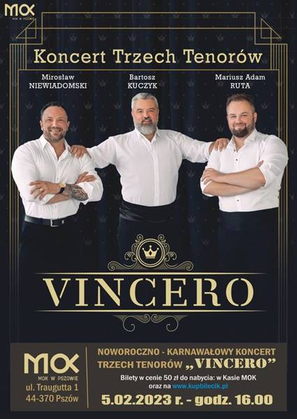 Drodzy Państwo zapraszamy na wyjątkowy koncert TRZECH TENORÓW VINCERO