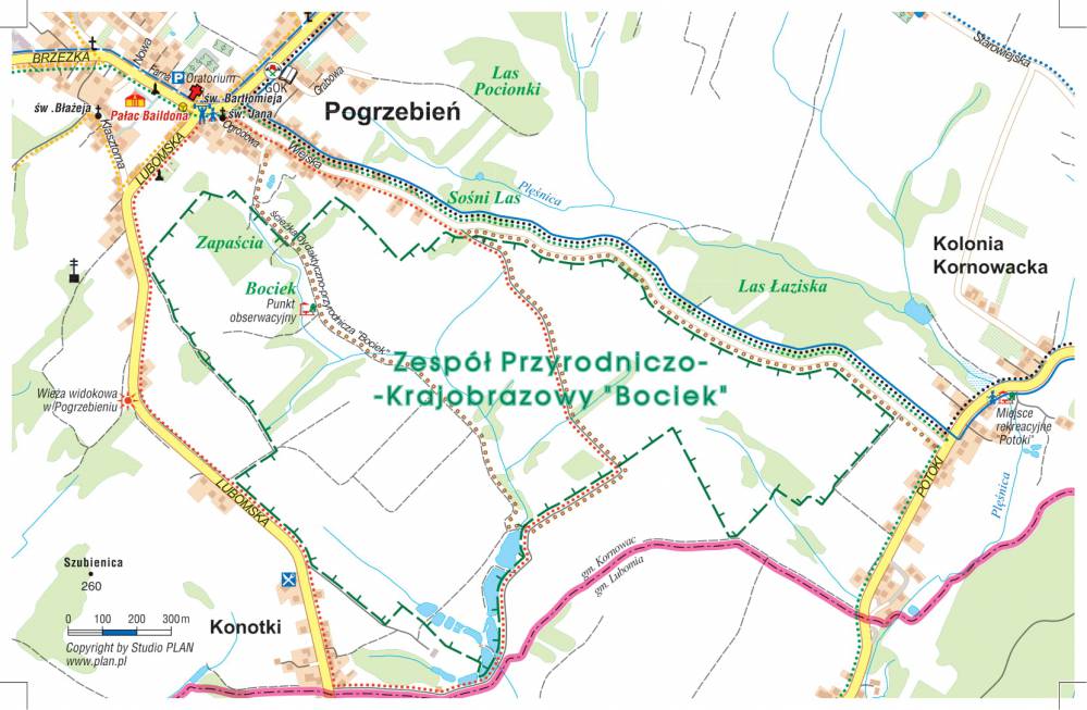 Trasa ścieżki Zespołu Przyrodniczo – Krajobrazowego „Bociek” w Pogrzebieniu przebiega przez najbardziej malownicze obszary Gminy Kornowac. Zaledwie 4-kilometrowa trasa pozwala zobaczyć kilka typów różnych siedlisk przyrodniczych, tj. murawy ciepłolubne, zadrzewienia śródpolne, rozległe pola rozdzielone miedzami, stawy. Piękna pofalowana panorama Płaskowyżu Rybnickiego urozmaica naszą wędrówkę dostarczając wspaniałych wrażeń.