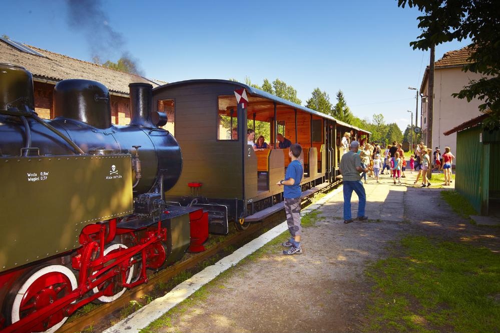Nieopodal znajduje się Zabytkowa Stacja Kolejki Wąskotorowej, która jest nie lada atrakcją szczególnie dla najmłodszych. Od wtorku do niedzieli kursuje pociąg turystyczny. Z przewodnikiem zwiedzimy też lokomotywownię. Jest tu też park linowy oraz bistro Peron 2.