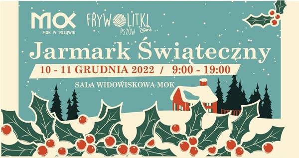 Zapraszamy Serdecznie na Jarmark Świąteczny, który odbędzie się 10 - 11 grudnia 2022 w Miejskim Ośrodku Kultury w Pszowie (sala widowiskowa).