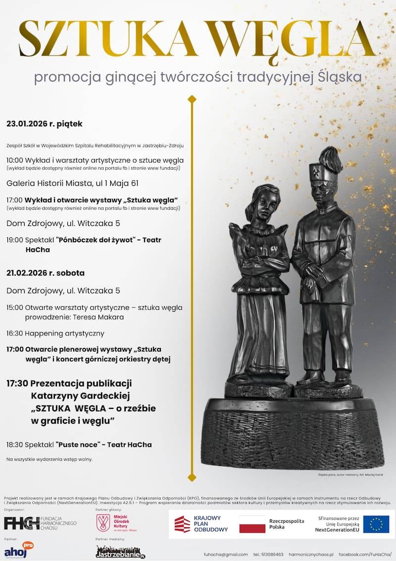 „Sztuka Węgla” to wyjątkowy projekt kulturalno-edukacyjny, którego celem jest ocalenie, popularyzacja i twórcza reinterpretacja ginących tradycji artystycznych Górnego Śląska. W centrum projektu znajduje się węgiel - surowiec - symbol regionu, traktowany nie tylko jako materiał przemysłowy, lecz także jako pełnoprawne medium artystyczne, nośnik pamięci, tożsamości i emocji.