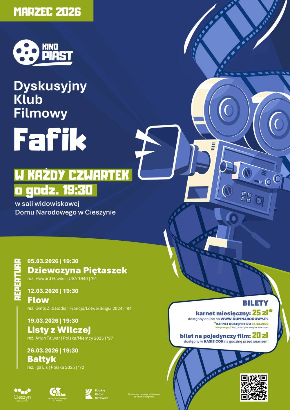Cieszyński Ośrodek Kultury "Dom Narodowy" i Kino Piast zapraszają na spotkania Dyskusyjnego Klubu Filmowego FAFIK w marcu 2026!