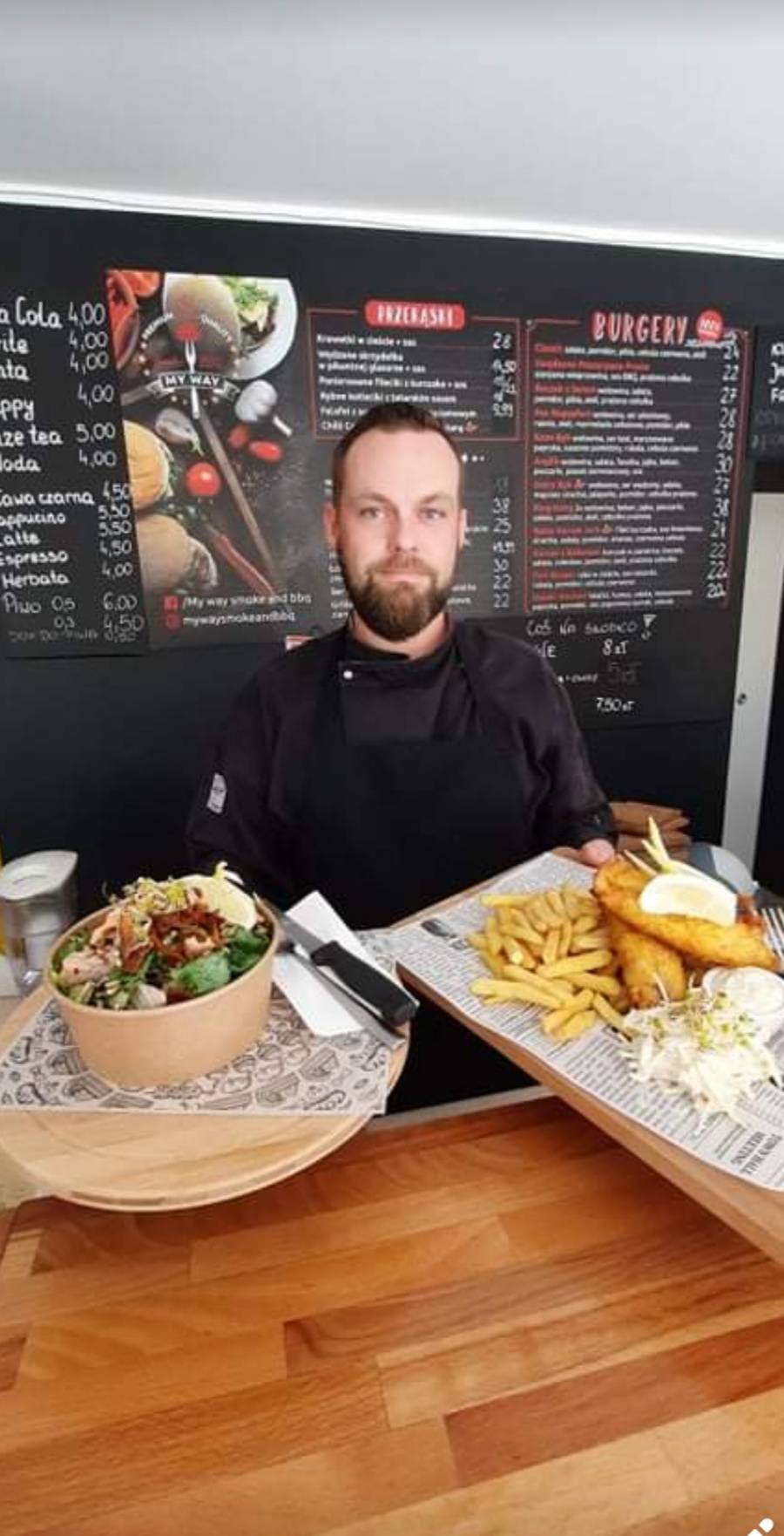 Nasza specjalnością są wyroby z naszego wędzalnika; skrzydełka, żeberka, łosoś i szarpana wieprzowina.