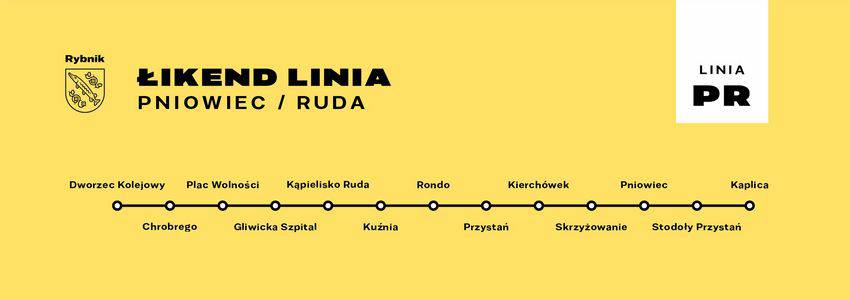 "Łikend linia PR" obsługuje przystanki znajdujące się na trasie: Dworzec Kolejowy – Plac Wolności – Kąpielisko Ruda – Orzepowice – Chwałęcice – kąpielisko Pniowiec – Stodoły i z powrotem.
